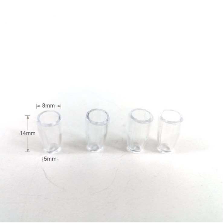 Kích cỡ cao 1.4cm , đường kính từ 0.8cm. Giá bán theo từng sản phẩm riêng lẻ.Chất liệu nhựa trong suốt.