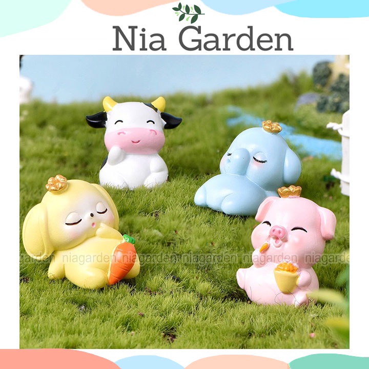 Mô hình con vật ngủ trang trí chậu cây để bàn mini - N5