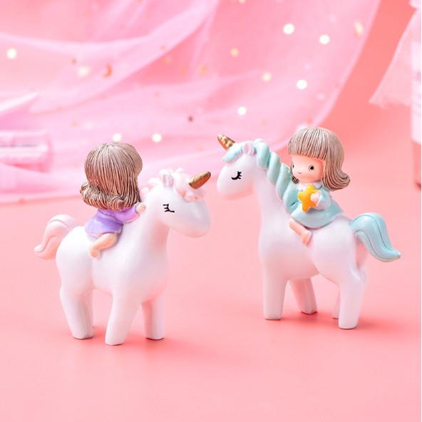 Mô hình công chúa nhỏ cưỡi kỳ lân thích hợp trang trí bánh, nhà búp bê, tiểu cảnh, DIY