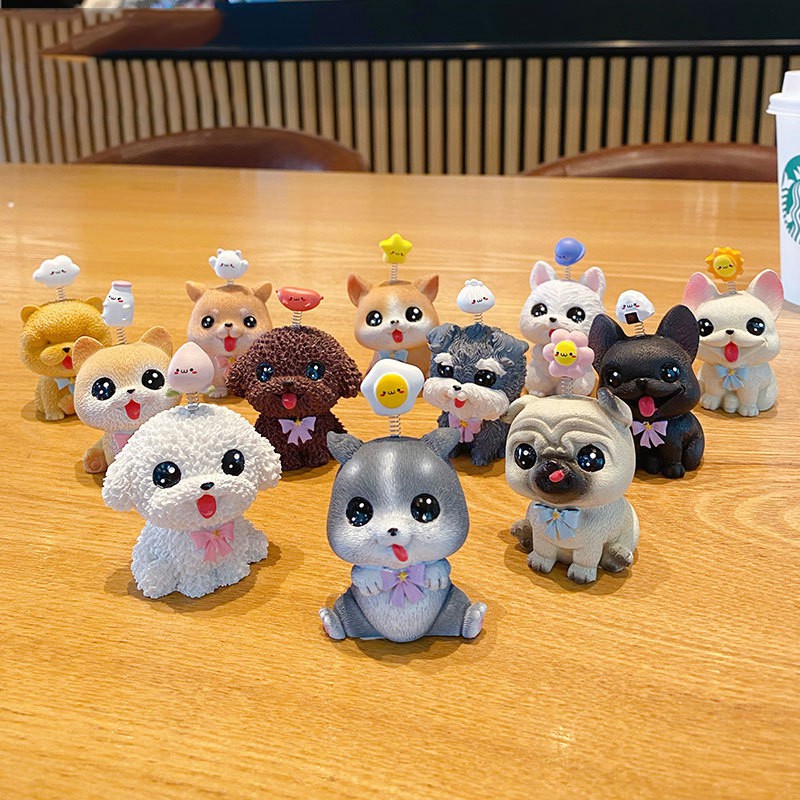 Nhà cửa & Đời sống > Trang trí nhà cửa > Khác || Mô hình cún đội thức ăn 12 dáng dễ thương bày bàn làm việc, taplo ô tôCòn hàng