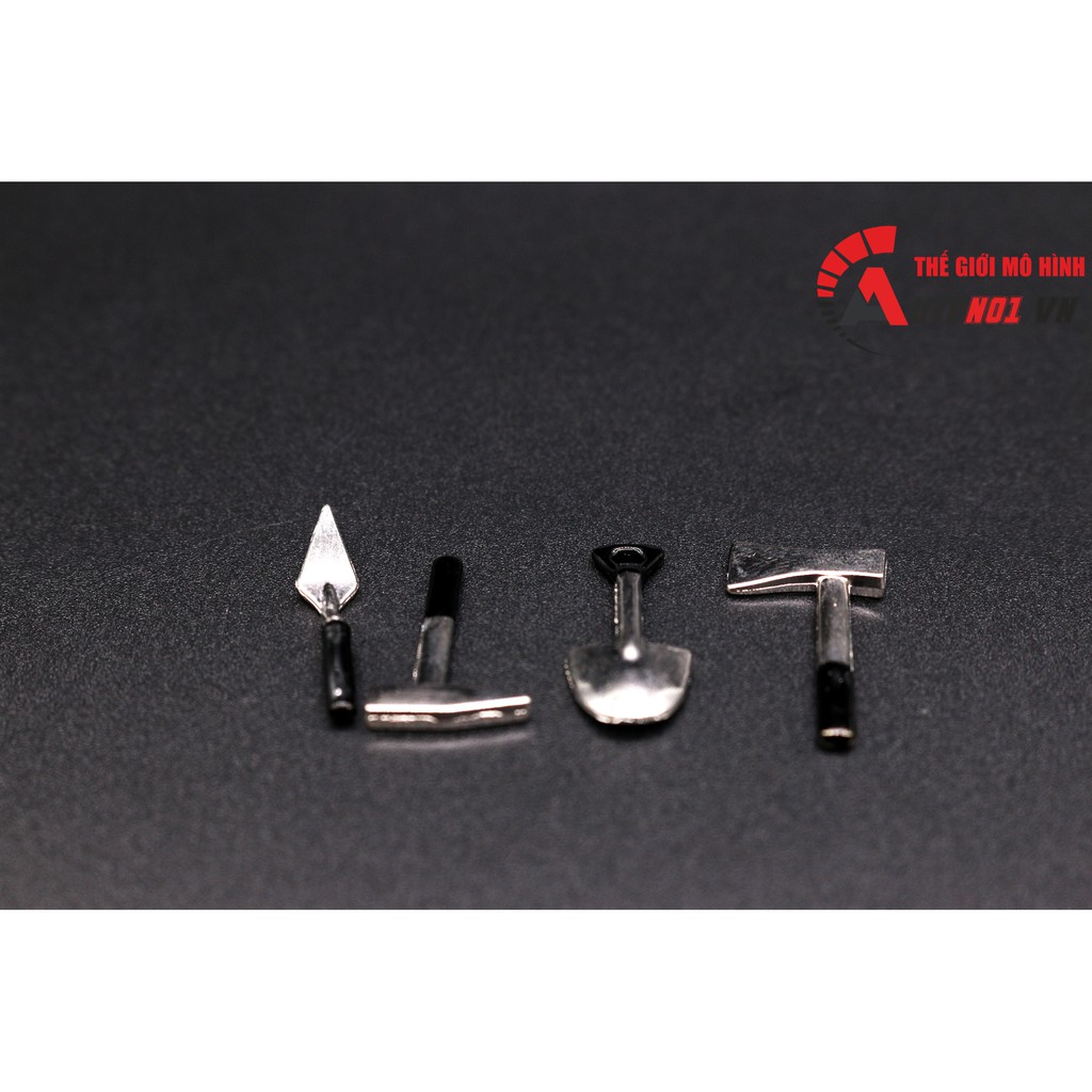 - 1 set bao gồm 1 cái xẻng, 1 cái búa rìu, 1 cái bay, 1 cái búa1. Chất liệu