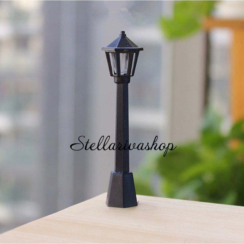 Giới thiệu Mô hình đèn bát giác đen 8cm trang trí tiểu cảnh, terrrarium