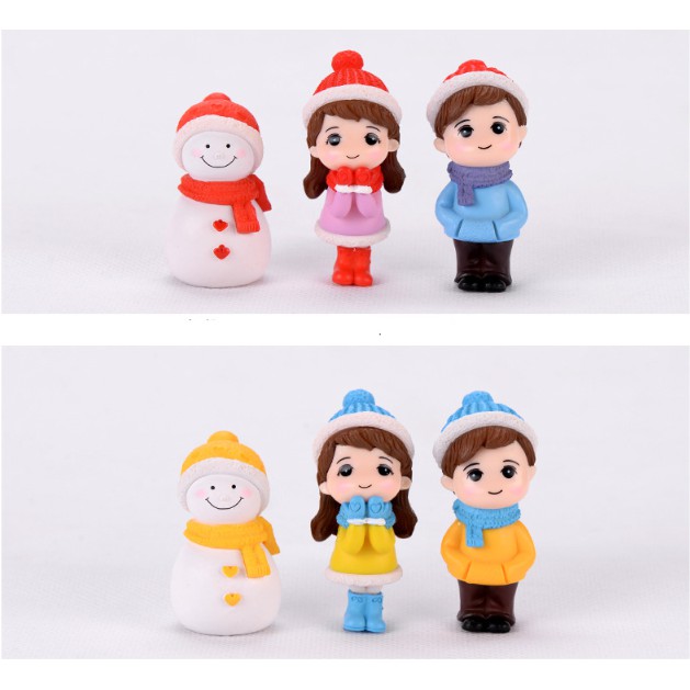 Giới thiệu Mô hình đôi bạn trẻ và người tuyết trang trí tiểu cảnh, bonsai, móc khóa, DIY