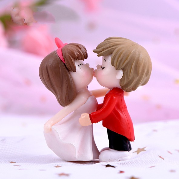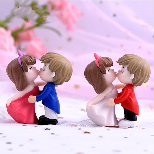 Mô hình đôi bé trai bé gái hôn nhau dễ thương thích hợp trang trí bánh kem, tiểu cảnh, móc khóa, DIY