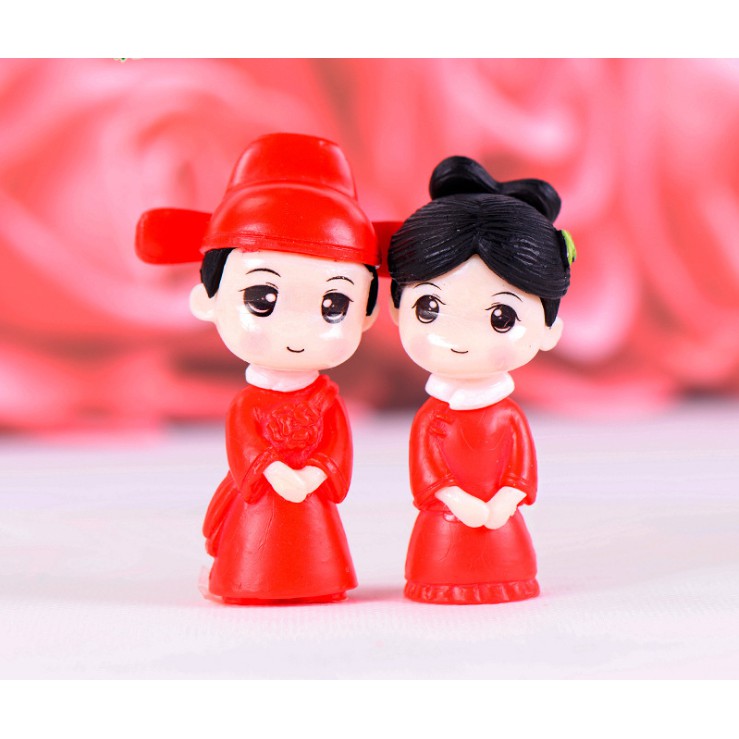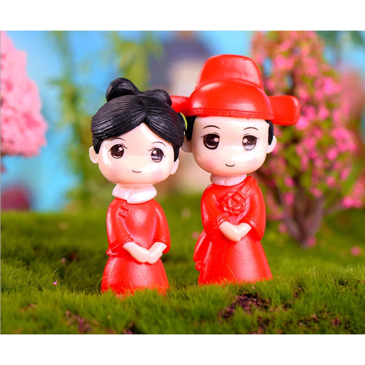 Nhà cửa & Đời sống > Làm vườn > Trang trí vườn || Mô hình đôi cô dâu chú rể trang phục truyền thống màu đỏ trang trí tiểu cảnh, móc khóa, DIYCòn hàng