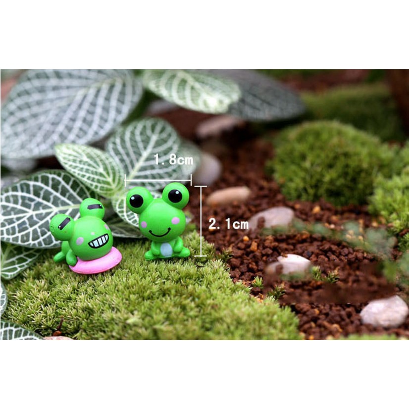 Đôi ếch nhỏ cỡ 1.8 x 2.1 cm, nhựa cứng màu xanh.Thích hợp trang điểm gốc bonsai, tiểu cảnh, đặt trên lối rải sỏi hoặc lá sen rất hợp.