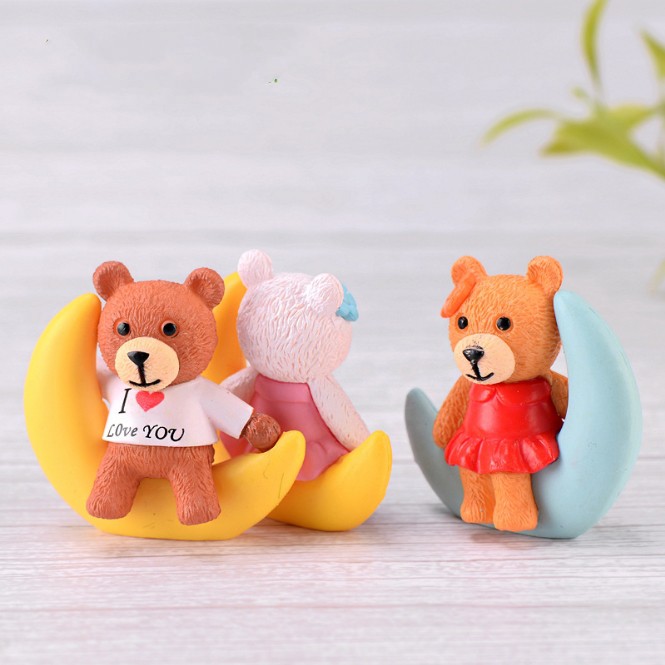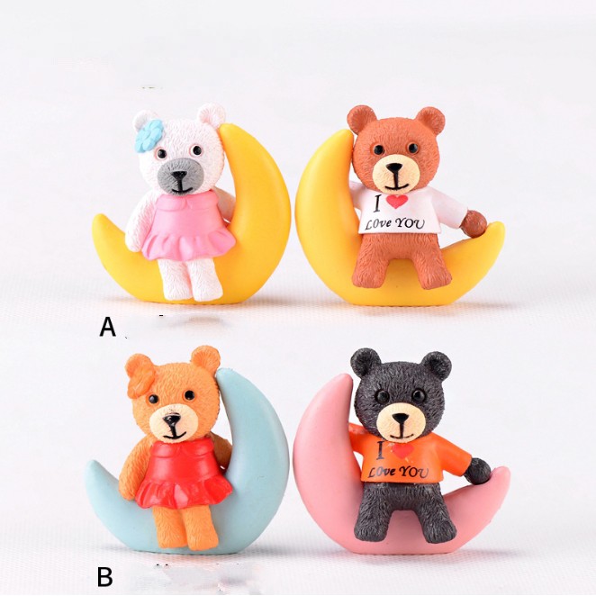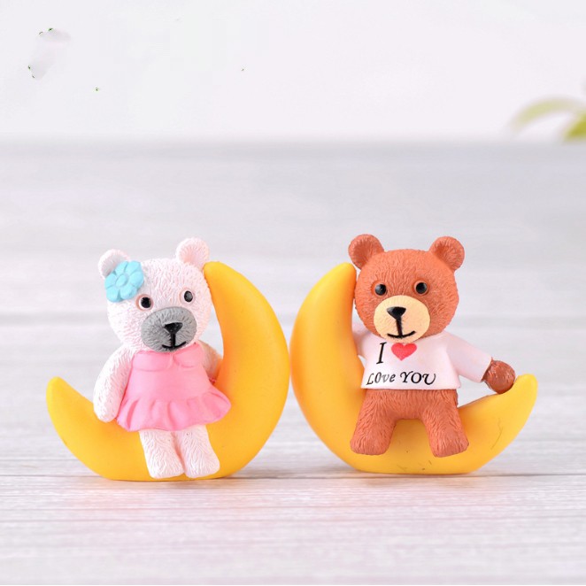Mô hình đôi gấu ngồi trên cung trăng trang trí bánh kem, tiểu cảnh, móc chìa khóa, DIY