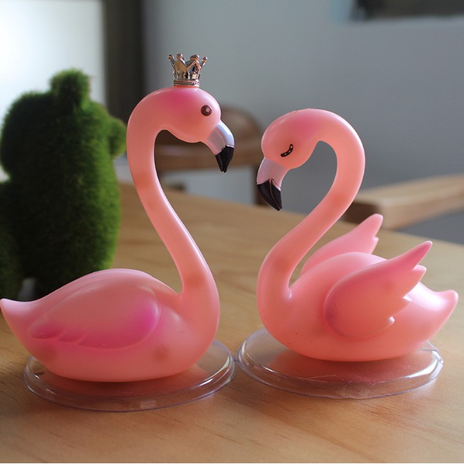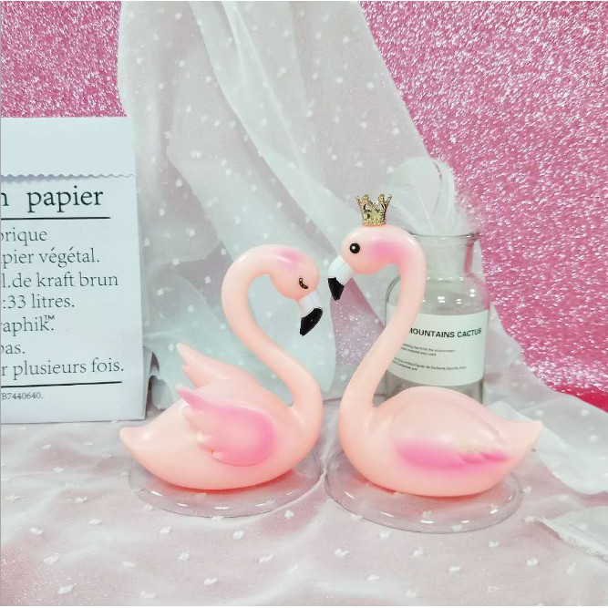 Đôi hồng hạc màu hồng cực cute với tạo hình con trống mở mắt hiền lành ngắm con mái (nhắm mắt dịu dàng) hợp lại thành hình trái tim rất ý nghĩa.