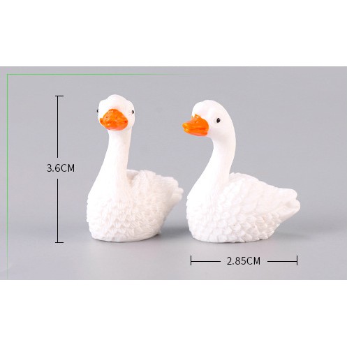 Sản phẩm là 02 mô hình ngỗng trắng bằng nhựa, cao 3.6cm x ngang 2.85cmHãy thử trải nghiệm cảm giác DIY nhé !