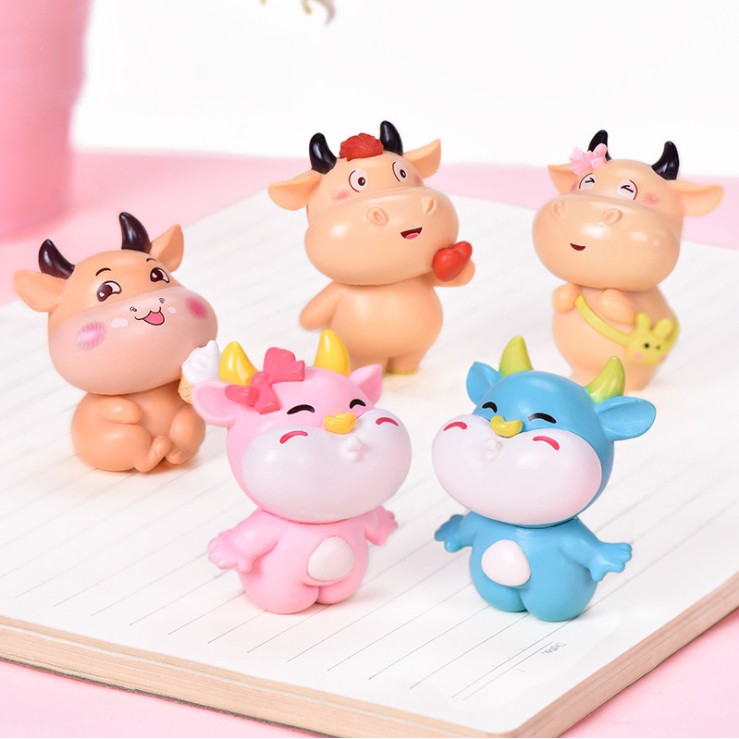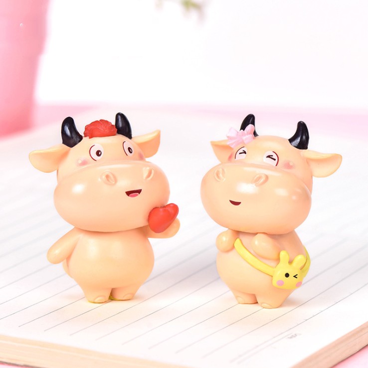 Mô hình đôi trâu Tân Sửu dễ thương trang trí tiểu cảnh, terrarium, móc khóa, DIY