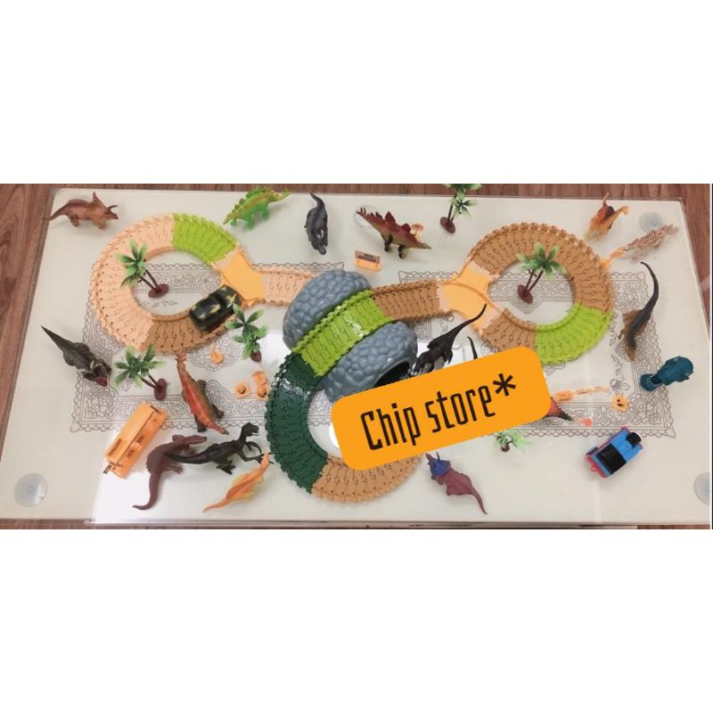 Đường đua khủng long mới ra mắt siêu ngầu!!! kèm xe chạy pin leo dốc, lên cầu chạy theo đường ray tít mù luôn nhé!!!Đường ray có thể uốn lượn tùy ý. bé có thể tự thiết kế đường đua khác theo ý tưởng của mình!!