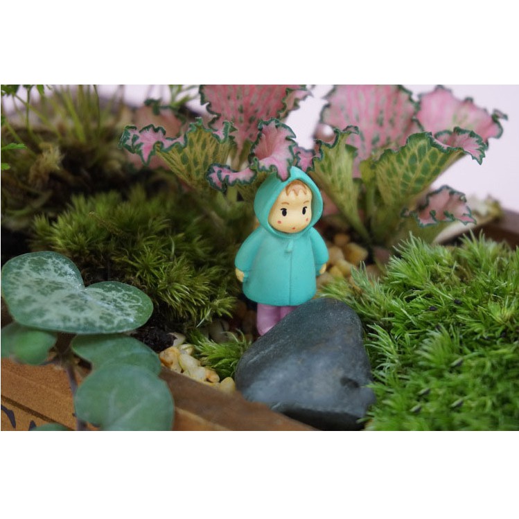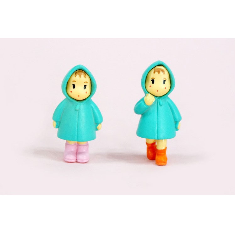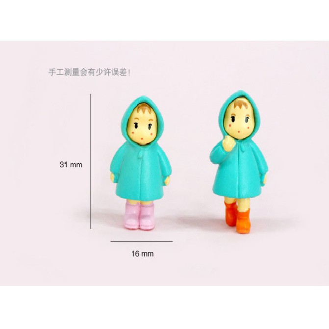 Mô hình em bé mặc áo mưa đi ủng và Tiểu Mai để trang trí bonsai, tiểu cảnh