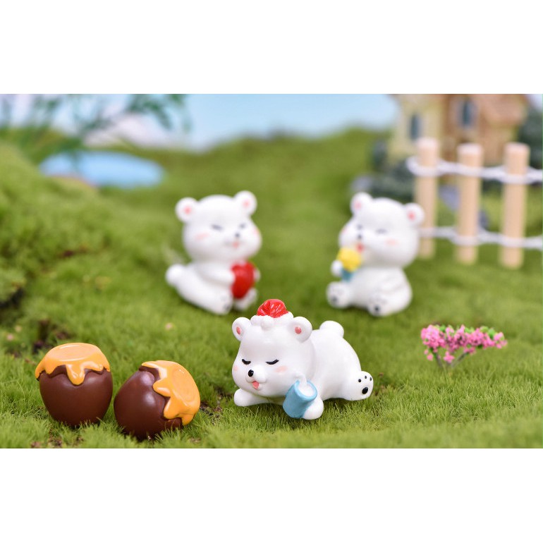 Mô hình Gấu trắng nhỏ dễ thương trang trí tiểu cảnh, terrariumSize 2-3cm