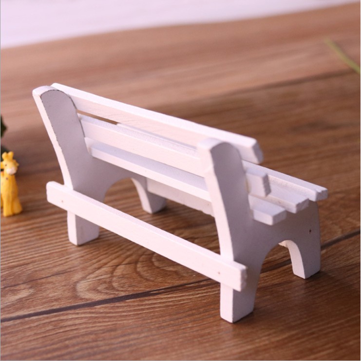 Mẫu ghế băng kiểu đơn giản, sơn trắng chất liệu gỗ nhẹ có thể dùng trang trí tiểu cảnh, terrarium, dựng ngoại cảnh chụp ảnh sản phẩm,....Kích thước: Dài 10.5cm x R 5cm x Cao 7cm.