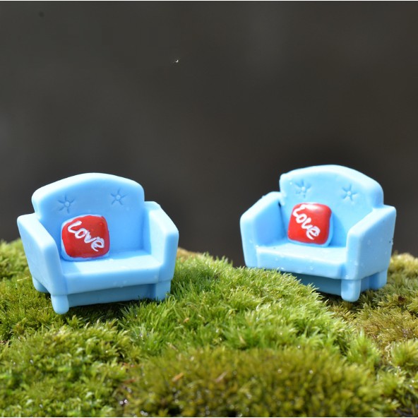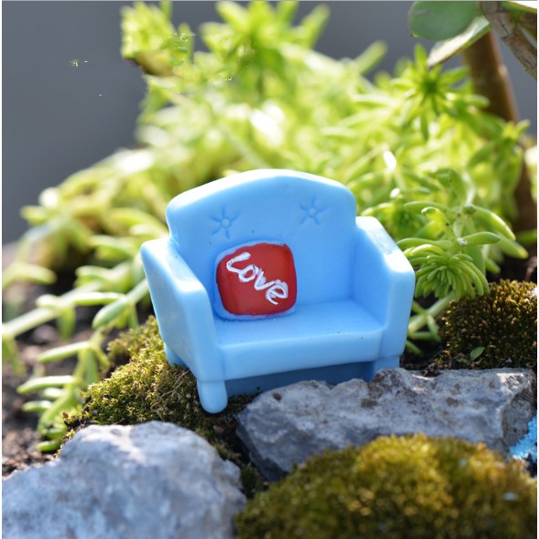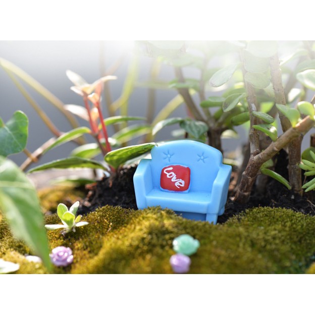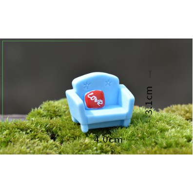 Mẫu ghế sofa xanh với gối tựa love đỏ thích hợp cho các bạn trang trí nhà búp bê, dựng tiểu cảnh, terrarium, DIY...Kích thước 1.3 x 4cm.