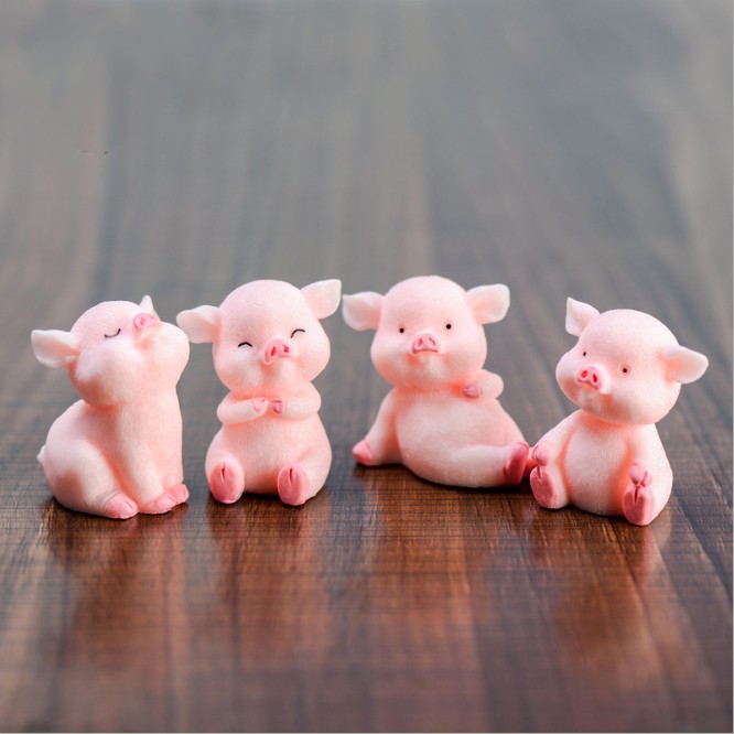 Mô hình gia đình lợn hồng may mắn trang trí tiểu cảnh, dựng cảnh studio, móc khóa, DIY