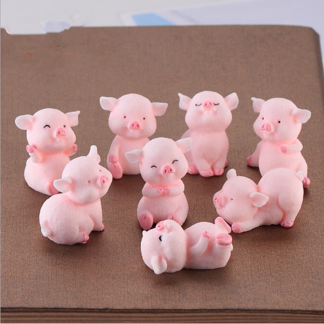 Bộ 08 chú lợn con cho các bạn dựng tiểu cảnh làm móc chìa khóa. Shop bán lẻ từng mẫu mô hình riêng, khách muốn mua cả combo vui lòng PM.Chất liệu: nhựa.