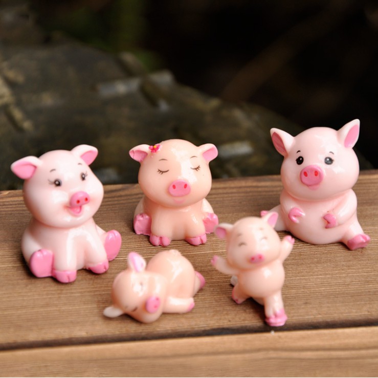 Bộ mô hình gia đình lợn hồng siêu cute để trang trí tiểu cảnh, bonsai