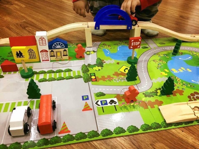 Mô hình thành phố loại nhỏ xếp hình công viên - Thiết kế chân thực, màu sắc tươi sáng, thích hợp cho bé tập xếp hình, vui chơi cùng gia đình, bạn bè - Giúp bé làm quen với phương tiện giao thông, biển báo, cầu đường... đồ chơi gỗ an toàn cho trẻ em .