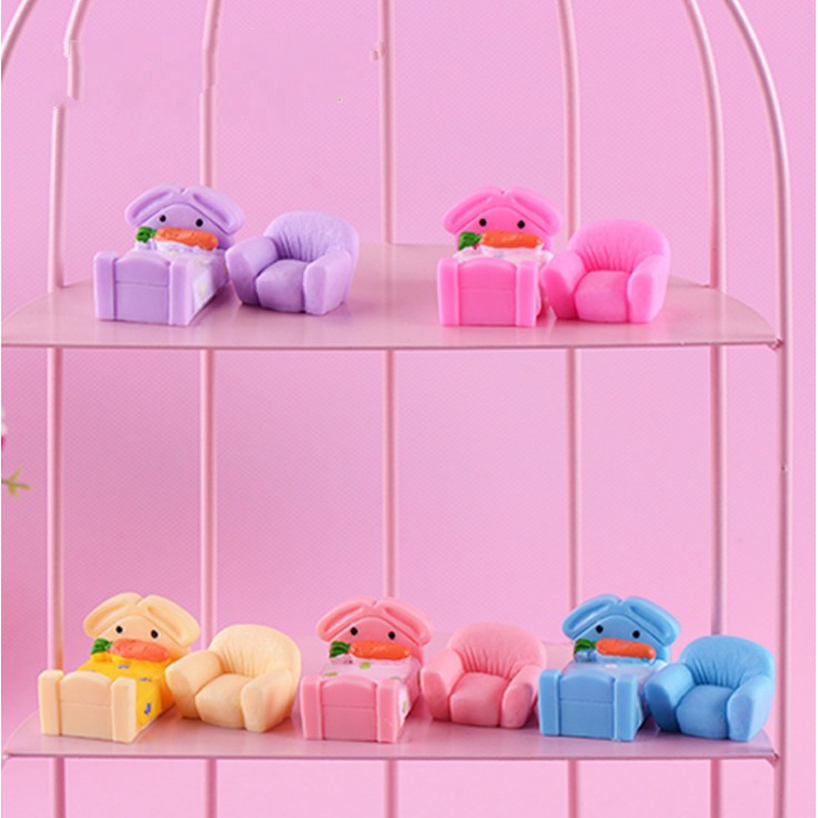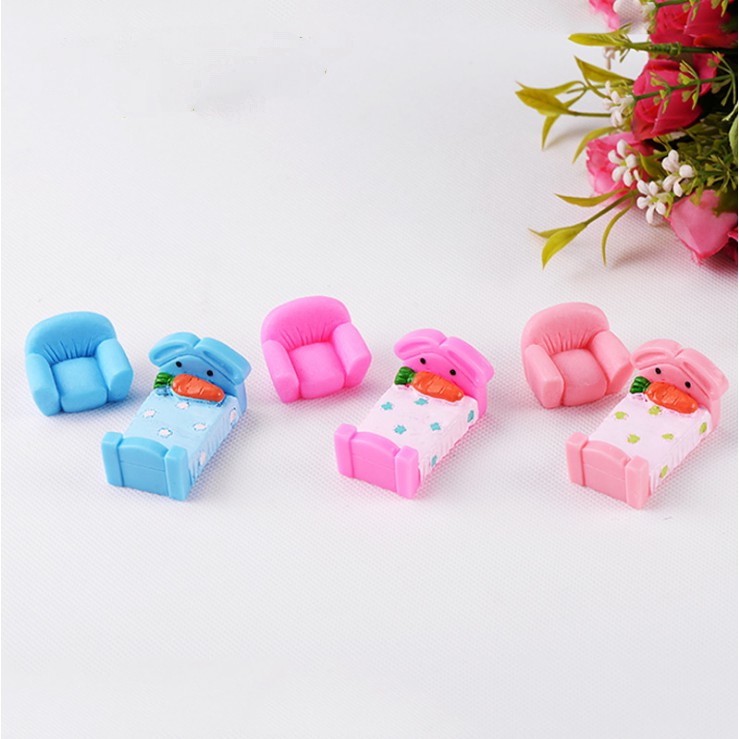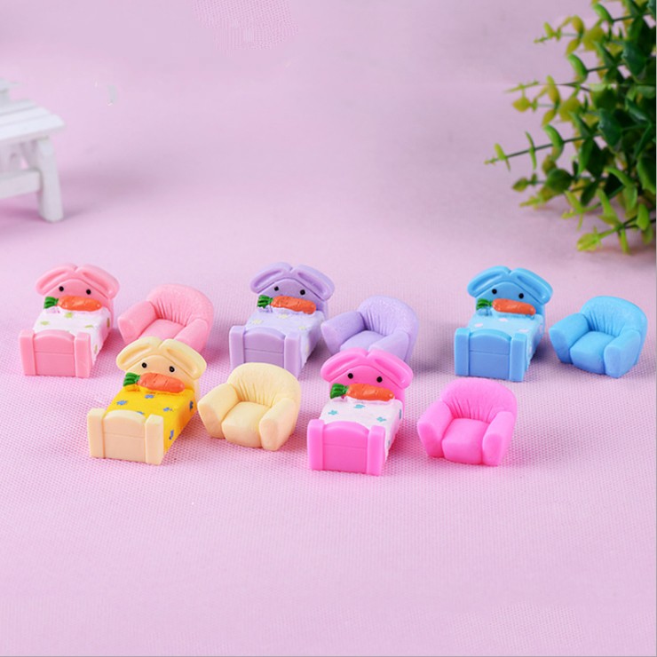 Mô hình giường nhỏ với ghế sofa dễ thương dùng trang trí phòng búp bê, tiểu cảnh, móc khóa, DIY