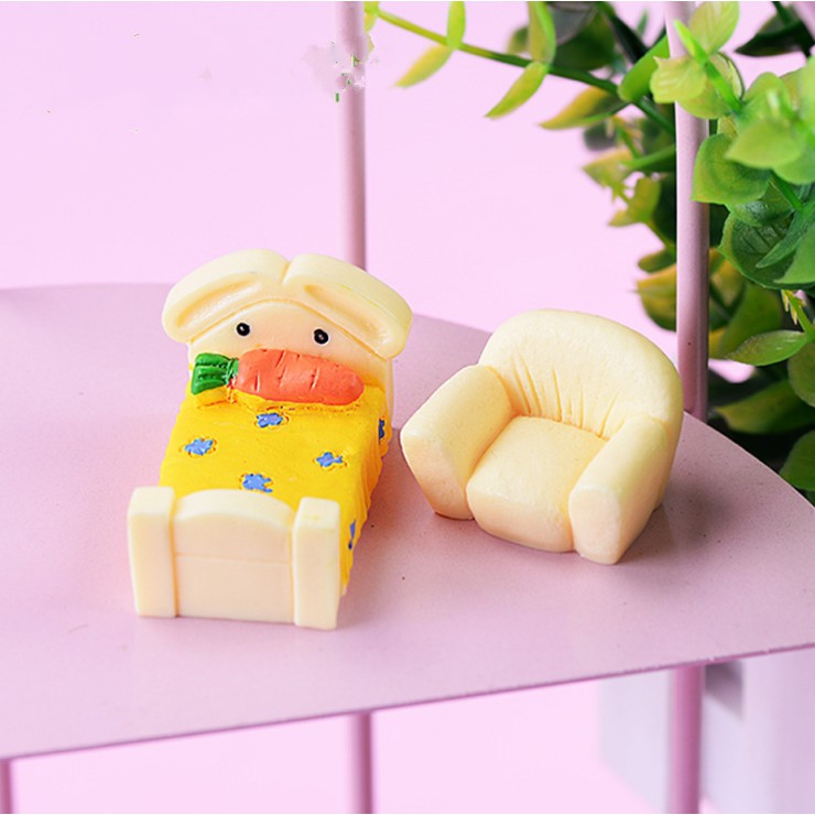 Nhà cửa & Đời sống > Làm vườn > Trang trí vườn || Mô hình giường nhỏ với ghế sofa dễ thương dùng trang trí phòng búp bê, tiểu cảnh, móc khóa, DIYCòn hàng