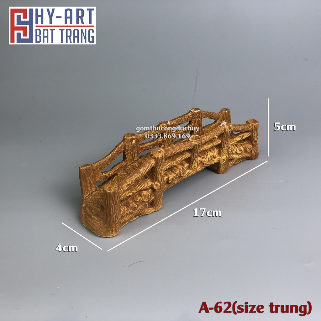 Mô hình gốm Cây cầu gỗ phụ kiện trang trí tiểu cảnh hòn non bộ bể cá chậu cây bonsai-Chất liệu: gốm đất nung (Hoàng Thổ) KHÔNG ĐỘC HẠI, KHÔNG GÂY Ô NHIỄM NƯỚC.