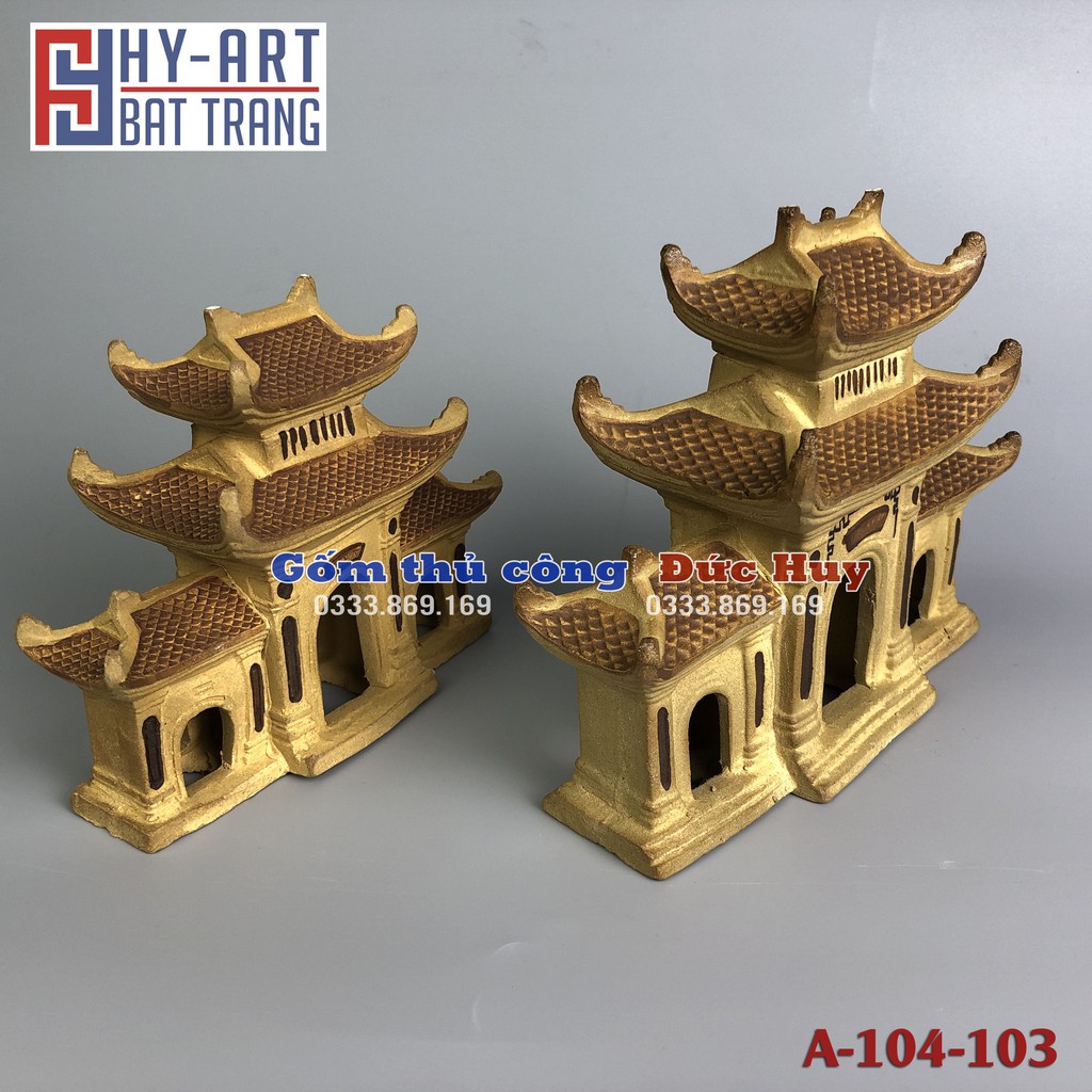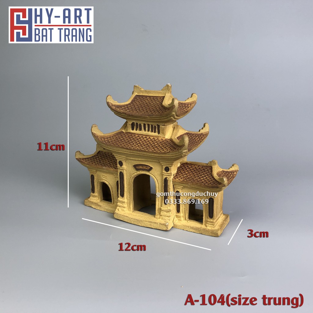 Mô hình gốm Cổng làng phụ kiện trang trí tiểu cảnh hòn non bộ bể cá chậu cây bonsai-Chất liệu: gốm đất nung (Hoàng Thổ) KHÔNG ĐỘC HẠI, KHÔNG GÂY Ô NHIỄM NƯỚC.