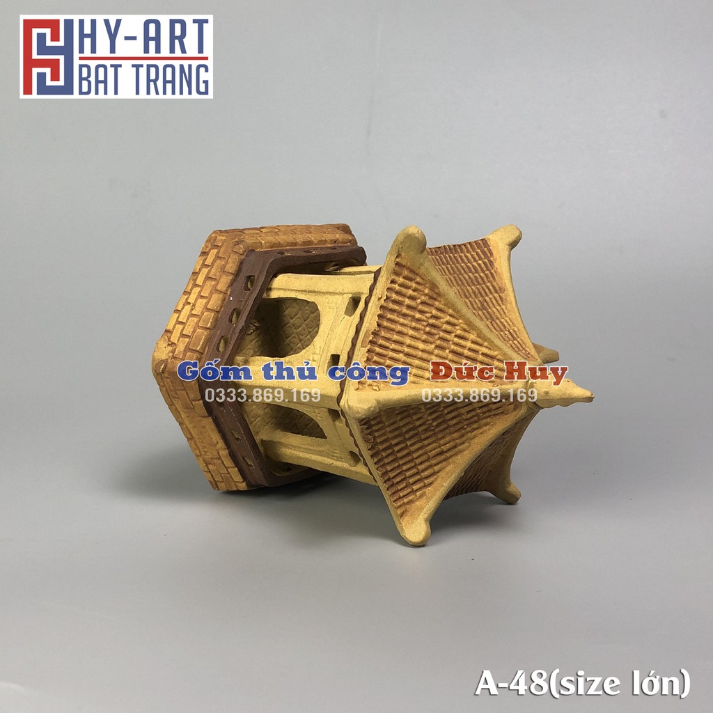 Mô hình gốm Lầu lục lăng phụ kiện trang trí tiểu cảnh hòn non bộ bể cá chậu cây bonsai-Chất liệu: gốm đất nung (Hoàng Thổ) KHÔNG ĐỘC HẠI, KHÔNG GÂY Ô NHIỄM NƯỚC.