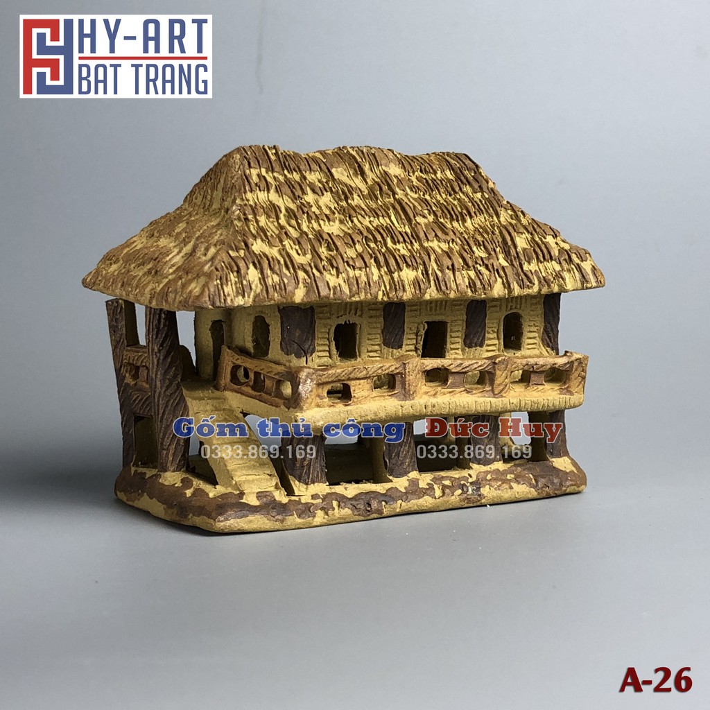 Mô hình gốm Nhà Sàn phụ kiện trang trí tiểu cảnh hòn non bộ bể cá chậu cây bonsai-Chất liệu: gốm đất nung (Hoàng Thổ) KHÔNG ĐỘC HẠI, KHÔNG GÂY Ô NHIỄM NƯỚC.