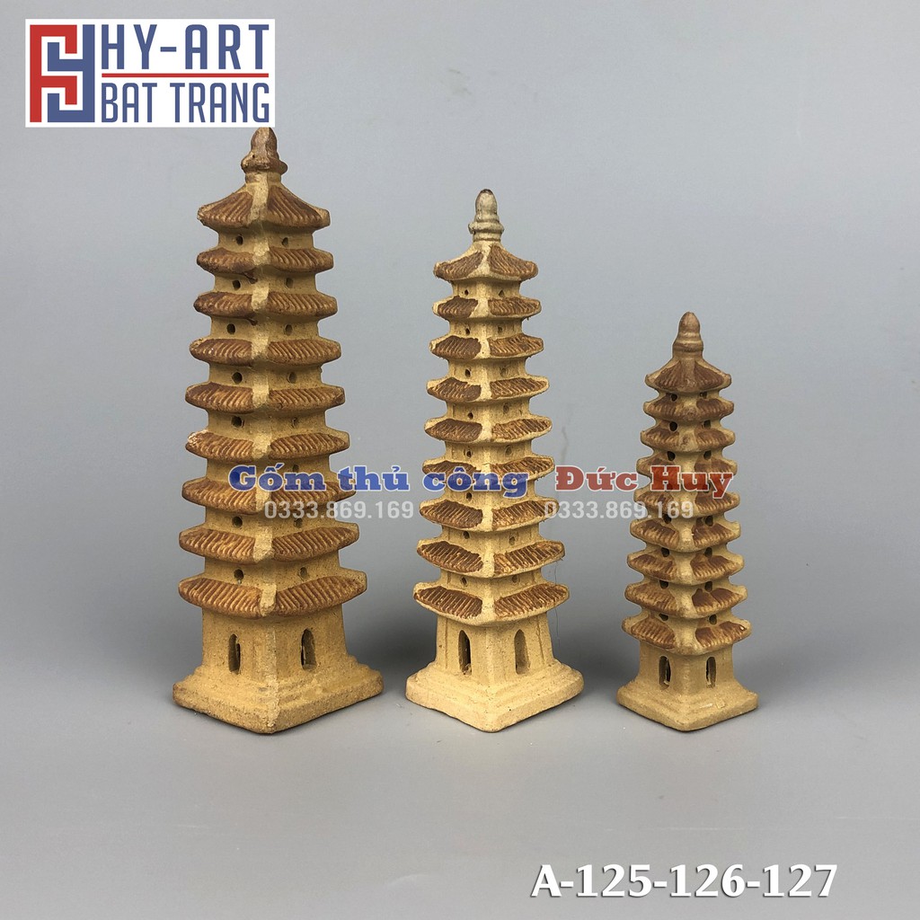Mô hình gốm Tháp vuông mini phụ kiện trang trí tiểu cảnh hòn non bộ bể cá chậu cây bonsai-Chất liệu: gốm đất nung (Hoàng Thổ) KHÔNG ĐỘC HẠI, KHÔNG GÂY Ô NHIỄM NƯỚC.