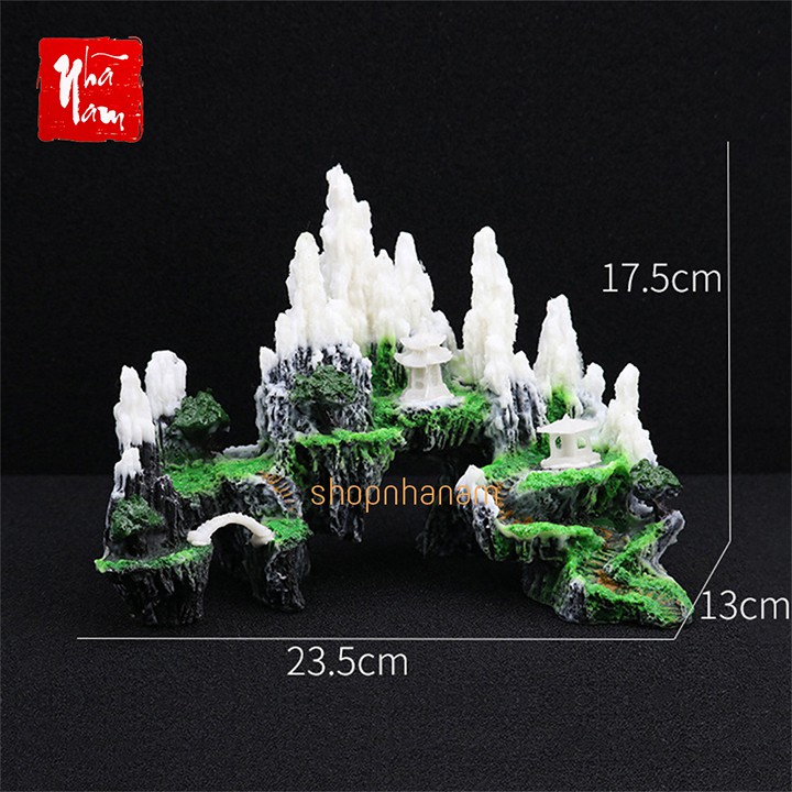 Mô hình hòn non bộ giả sơn núi tuyết ngôi chùa đá trang trí bể cá
