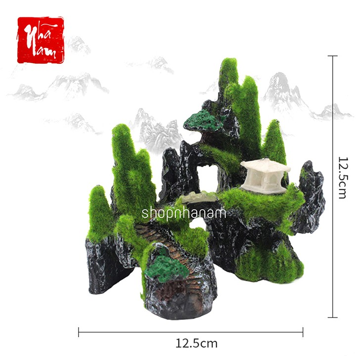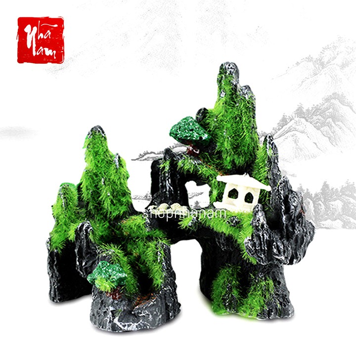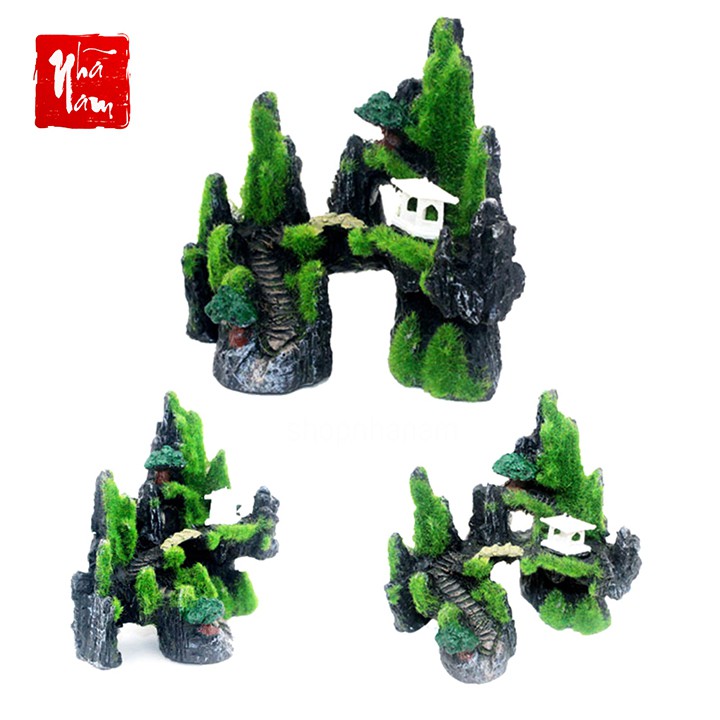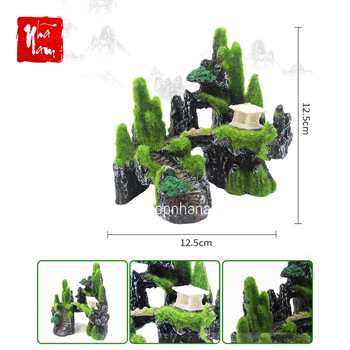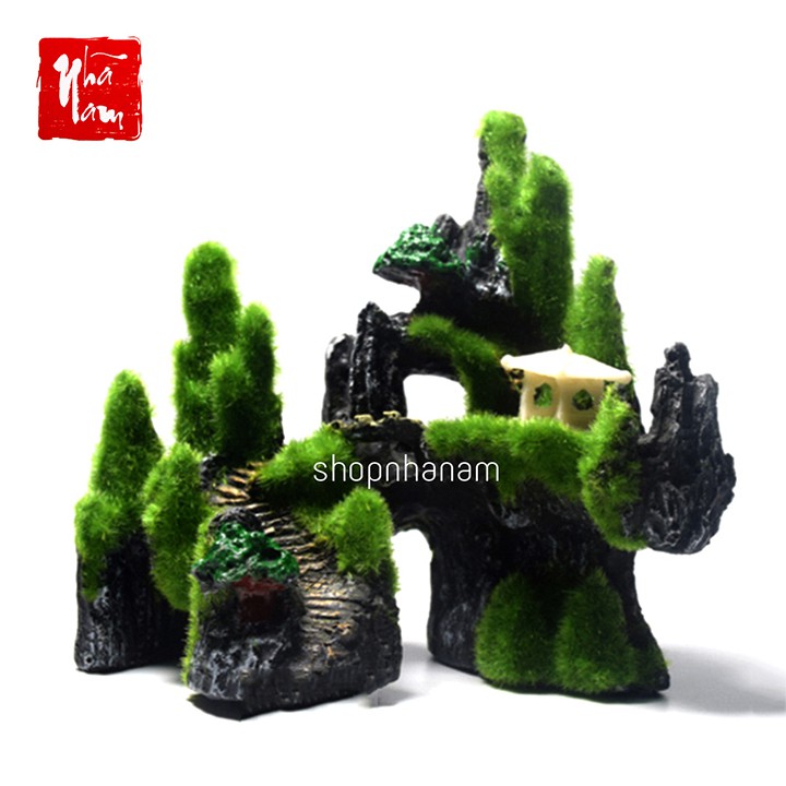 Mô hình hòn non bộ núi đá hang động cây cỏ 1 thiết bị phụ kiện bể cá trang trí nhà cửa lũa bể cá thủy sinh