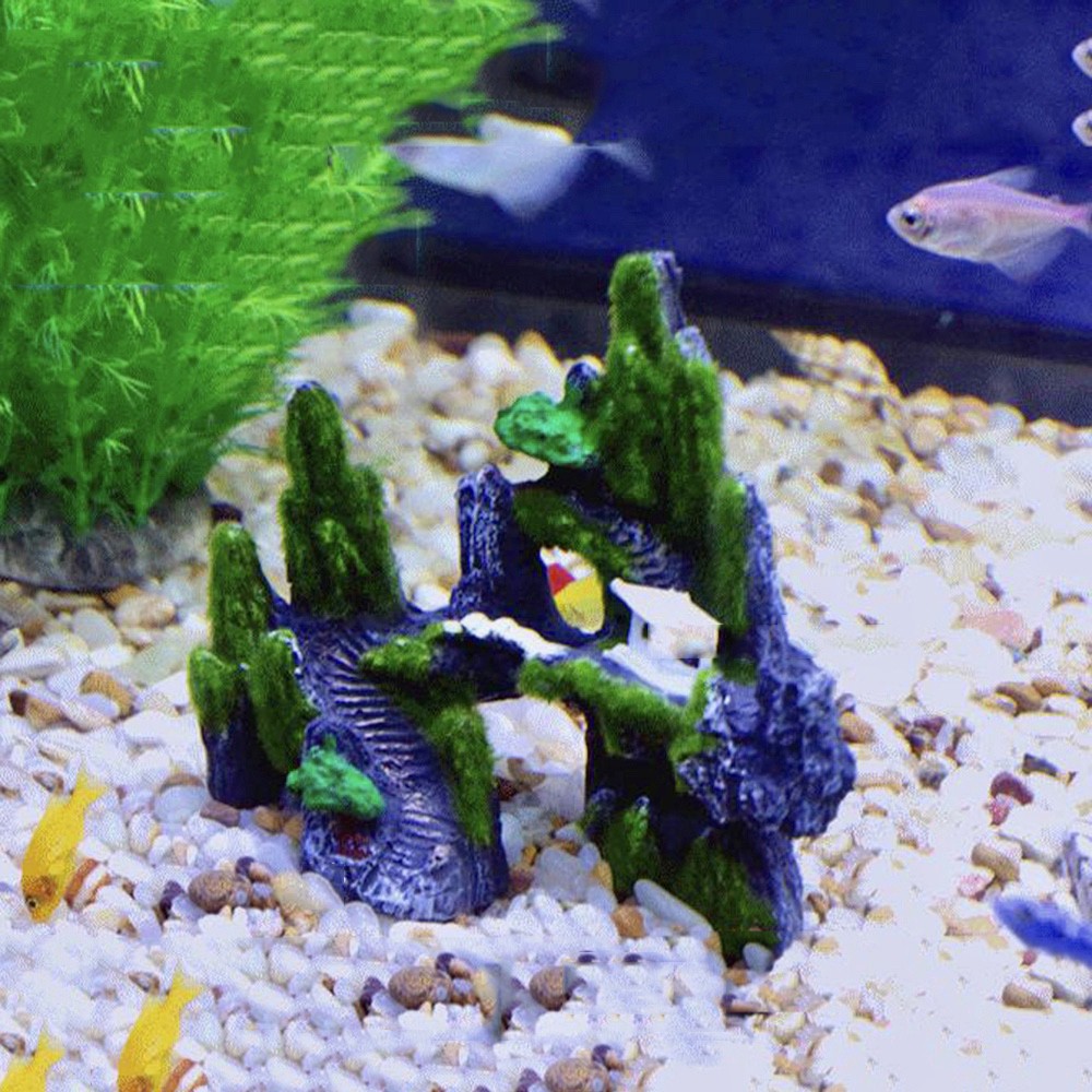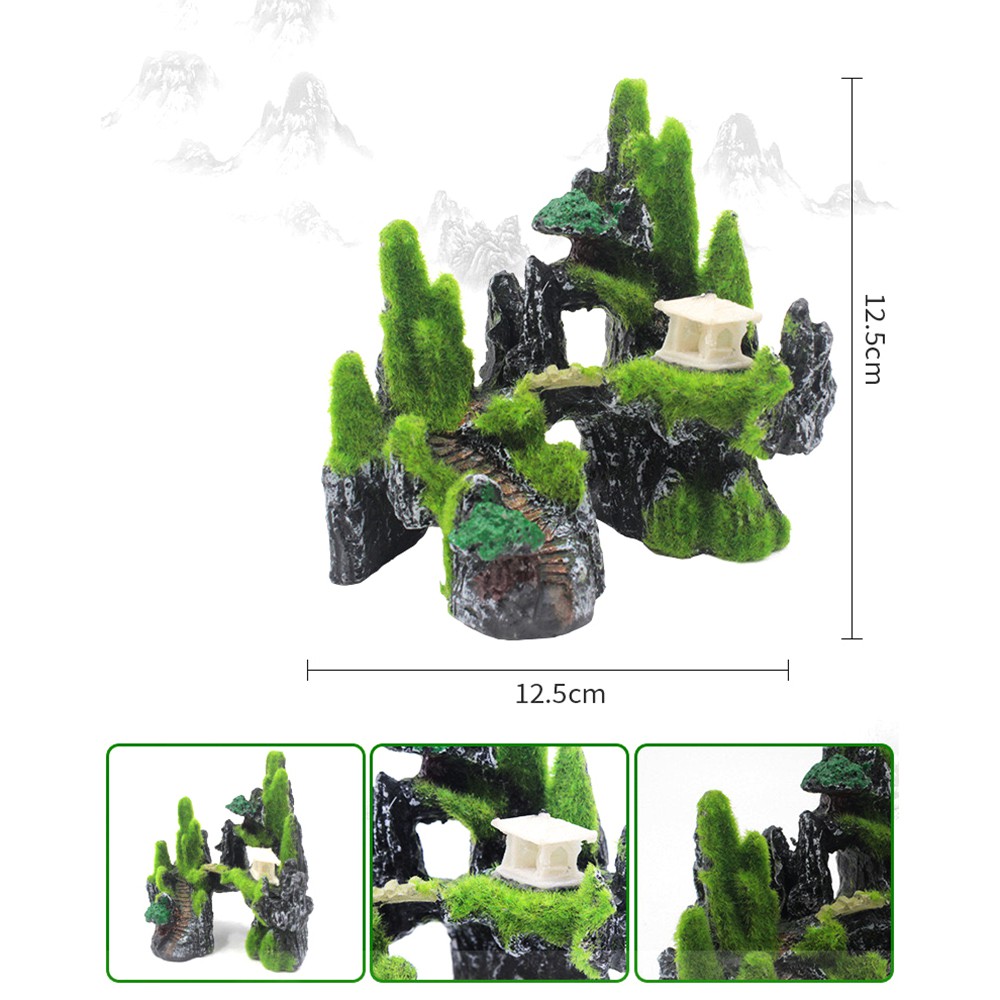 Mô hình hòn non bộ núi đá hang động cây cỏ 1 thiết bị phụ kiện bể cá trang trí tiểu cảnh bể cá nhà cửa