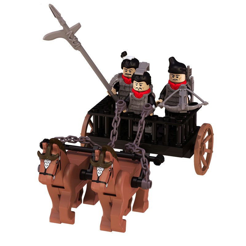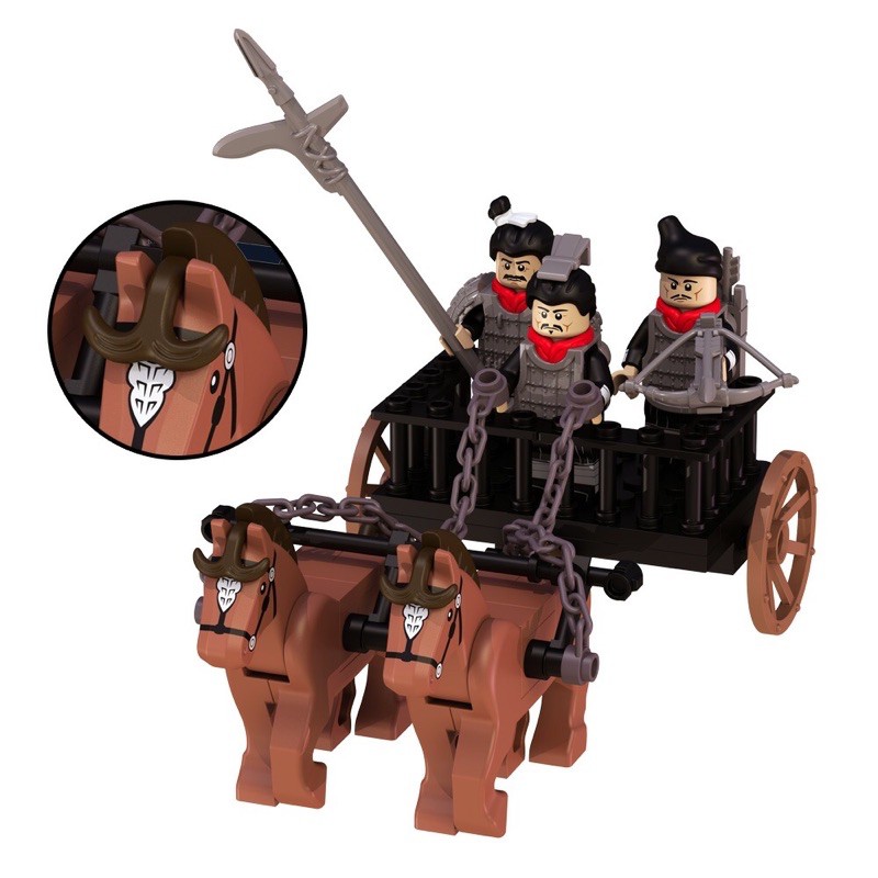 Mô hình lắp ghép Thiết Kỵ lính Tần Vương👉 Gồm 1 thiết kỵ có 3 lính kèm giáo, có 2 ngựa và xe như hình