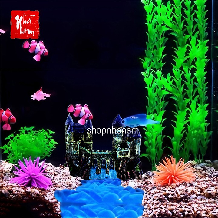 Mô hình lâu đài xanh trang trí bể cá phụ kiện thiết bị bể cá cảnh quan bể cá trang trí nhà cửa lũa bể cá thủy sinh