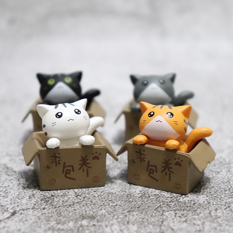 Mô hình chú mèo con bị bỏ rơi trong hộp carton vô cùng đáng yêu, xinh xắn để các bạn trang trí nhà búp bê, tiểu cảnh hay để trên bàn học, bàn làm việc cũng dễ thương vô cùngKích Thước: 2.8×1.7×3cm