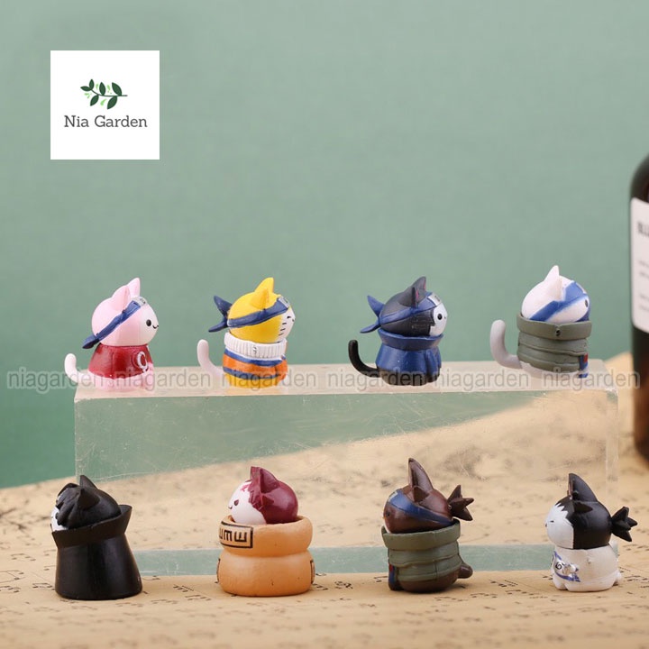 Mô hình mèo cosplay Naruto trang trí tiểu cảnh chậu cây mini để bàn Nia Garden N5