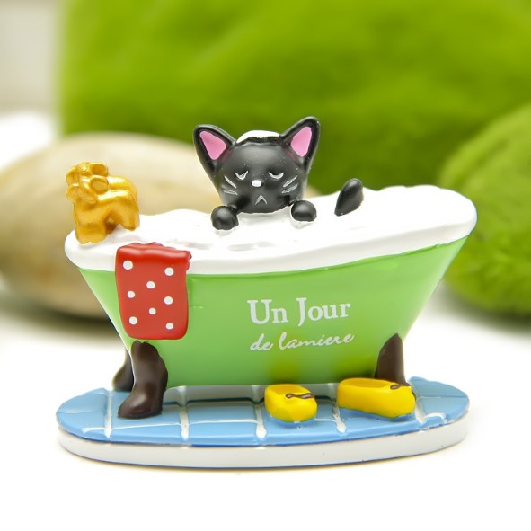 Mô hình mèo đen ngâm mình trong bồn tắm dùng trang trí tiểu cảnh, terrarium, DIY