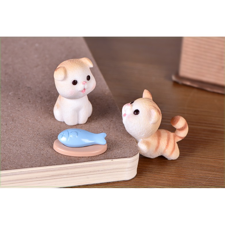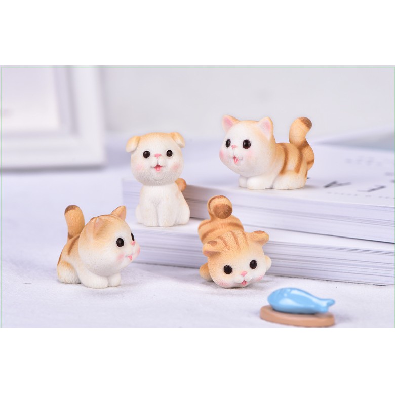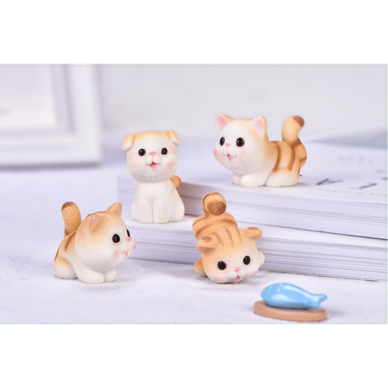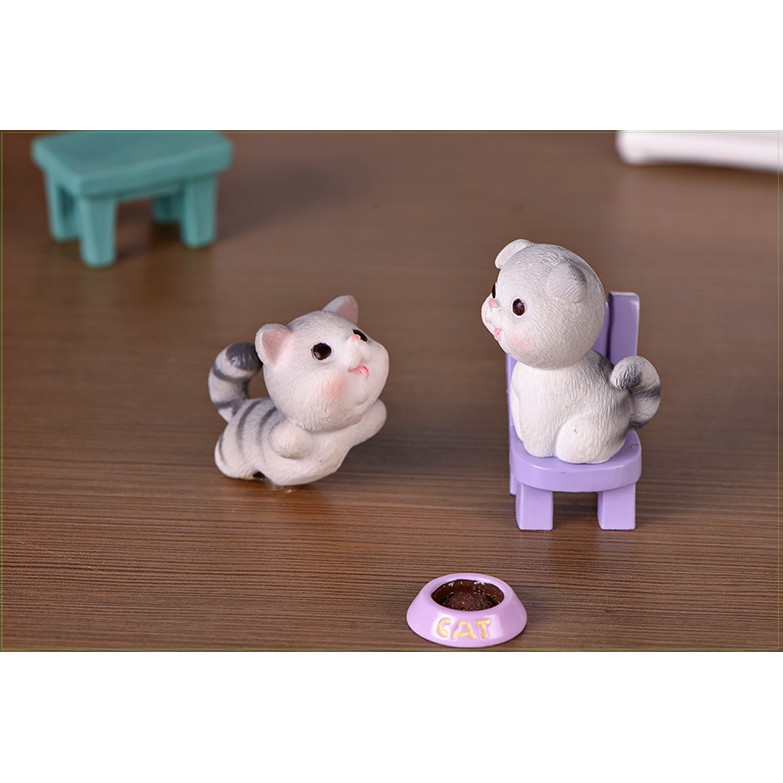 Mô hình mèo vàng và mèo xám xinh xắn trang trí tiểu cảnh, terrarium, DIY