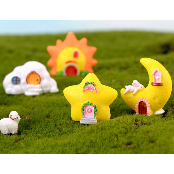 Nhà cửa & Đời sống > Trang trí nhà cửa > Khác || Mô hình ngôi nhà truyện cổ tích với Mây, Mặt Trăng Thỏ Ngọc, Mặt Trời và Ngôi Sao có thể trang trí, làm móc khóaCòn hàng