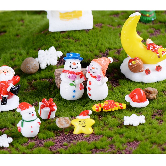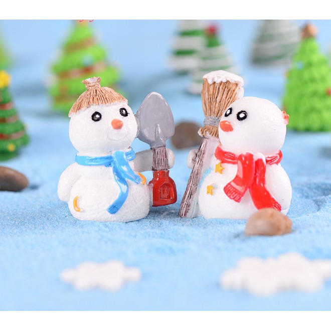 Mô hình người tuyết cầm chổi và xẻng ngộ nghĩnh thích hợp trang trí tiểu cảnh, móc chìa khóa, DIY