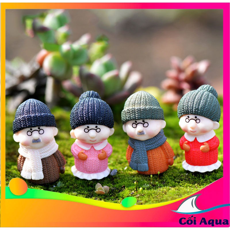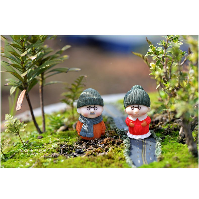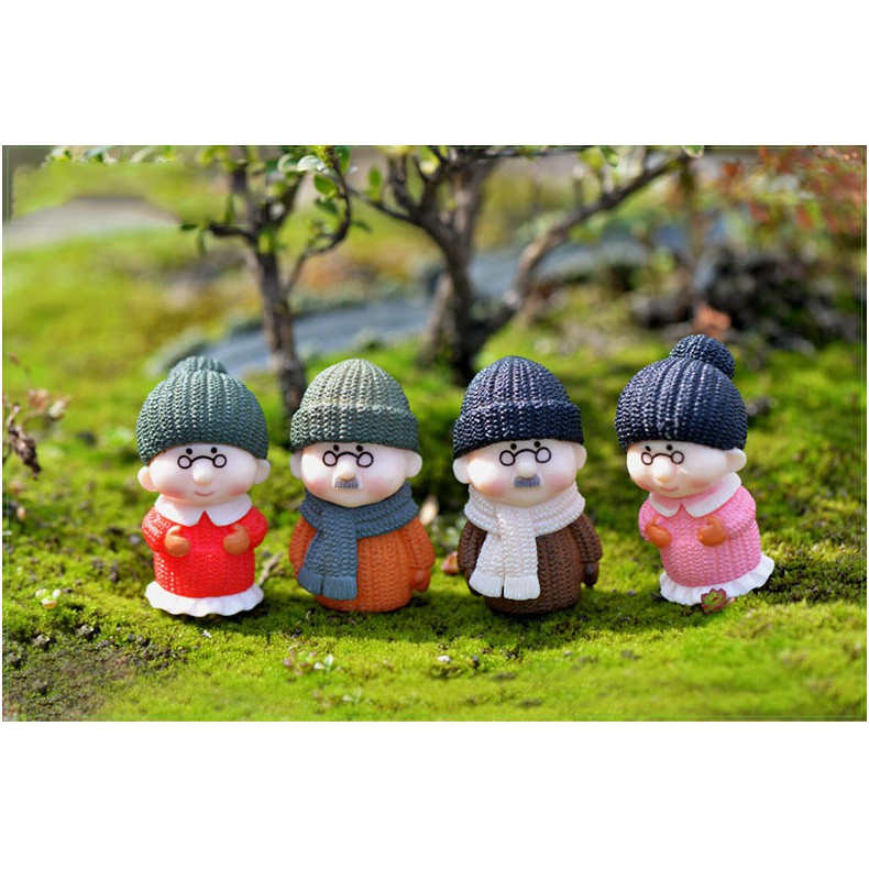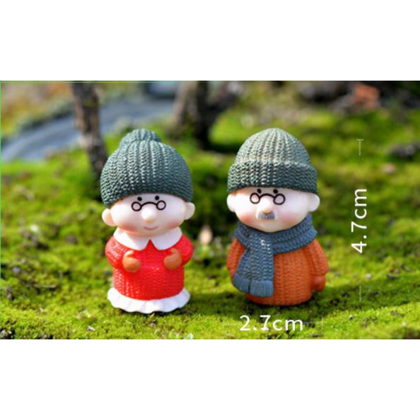 Mô hình ông bà mùa đông tiểu cảnh trang trí sen đá, sân vườn, bể cá, bể terrarium