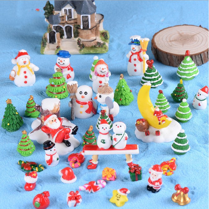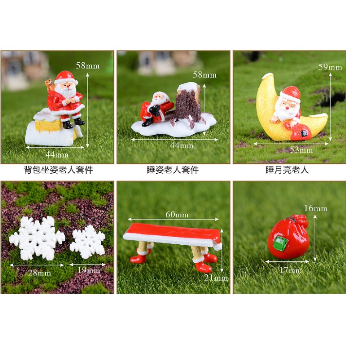 Giới thiệu Mô hình ông già Noel nằm bên gốc cây tuyết trắng và ông Santa leo ống khói trang trí tiểu cảnh, móc chìa khóa, DIY