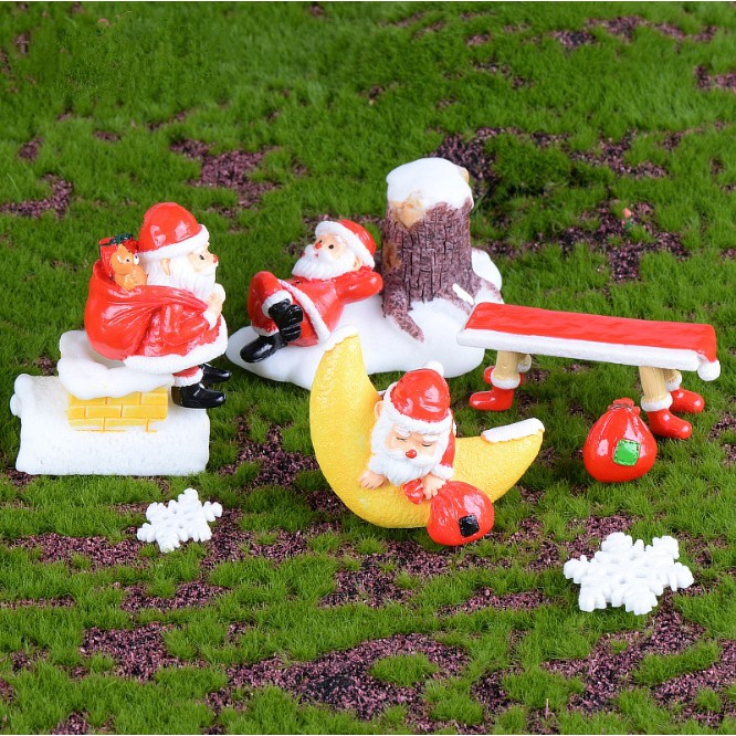 Mô hình ông già Noel nằm bên gốc cây tuyết trắng và ông Santa leo ống khói trang trí tiểu cảnh, móc chìa khóa, DIY
