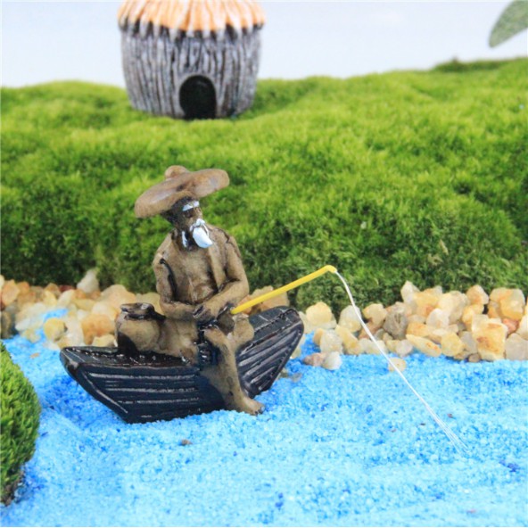 Mô hình ông lão ngư dân ngồi thuyền câu cá trang trí tiểu cảnh, terrarium, DIY