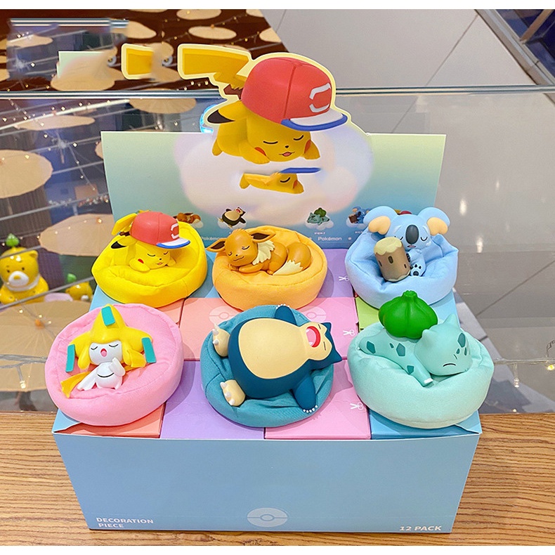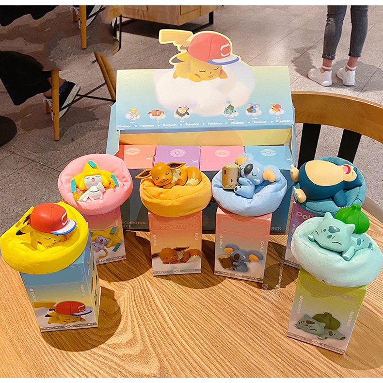 Mô hình Pokem đang ngủ dễ thương để bàn mini, tiểu cảnh, trang trí bàn học, bàn làm việc, tủ sách