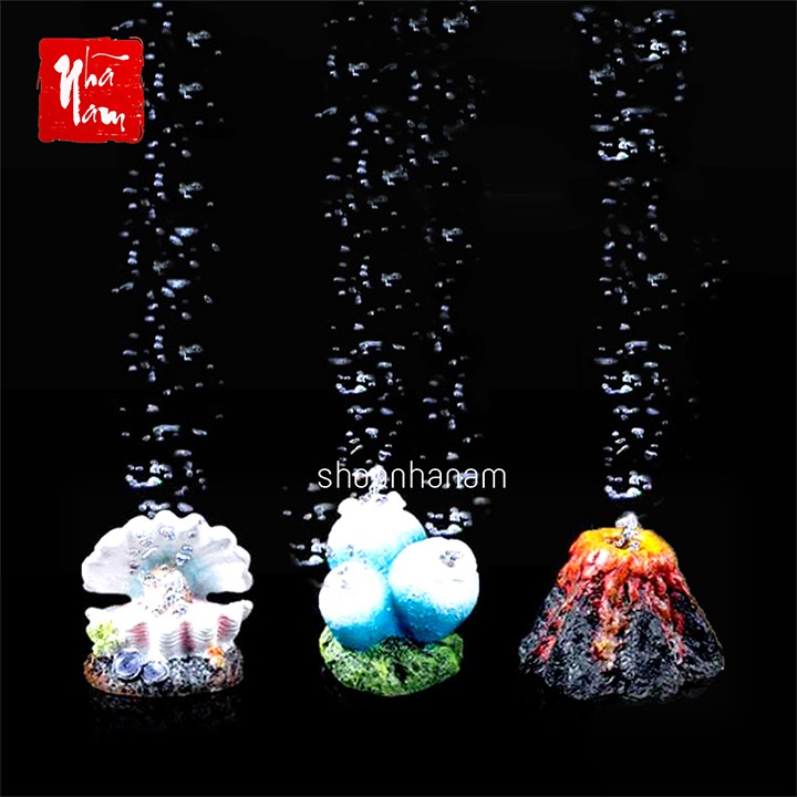 - Kích thước: Núi lửa 7*5 cm, bong bóng san hô 5*5 cm, vỏ ngọc trai 6*6.5 cm