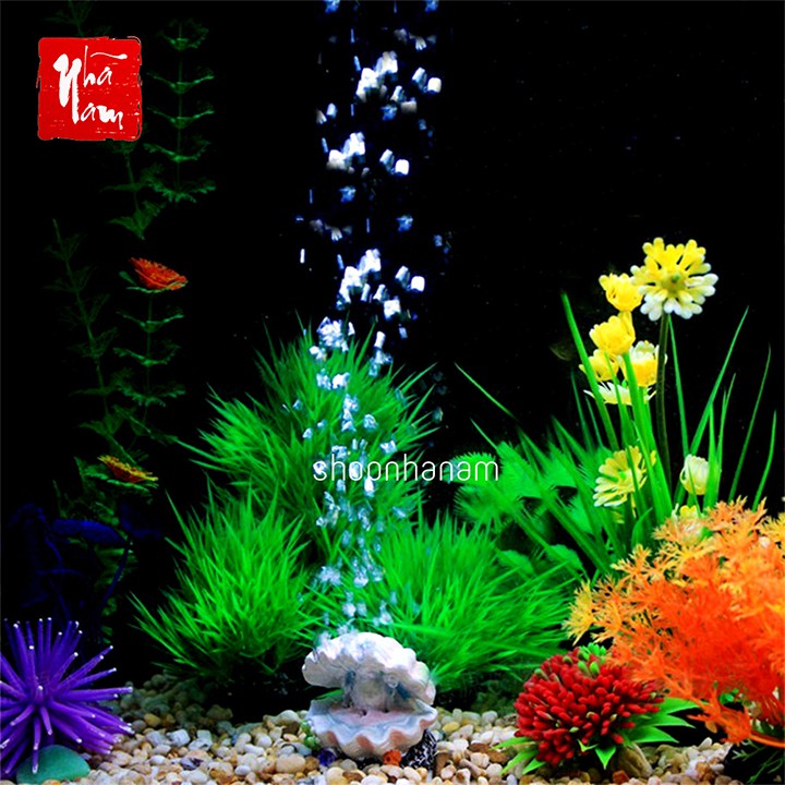- Đặc tính: Sản phẩm được sản xuất bằng chất liệu thân thiện với môi trường, không gây hại và phai màu khi ngâm trong nước. Có thể dùng trang trí bể cá hoặc đặt trong nhà để tăng mỹ quan không gian sống.