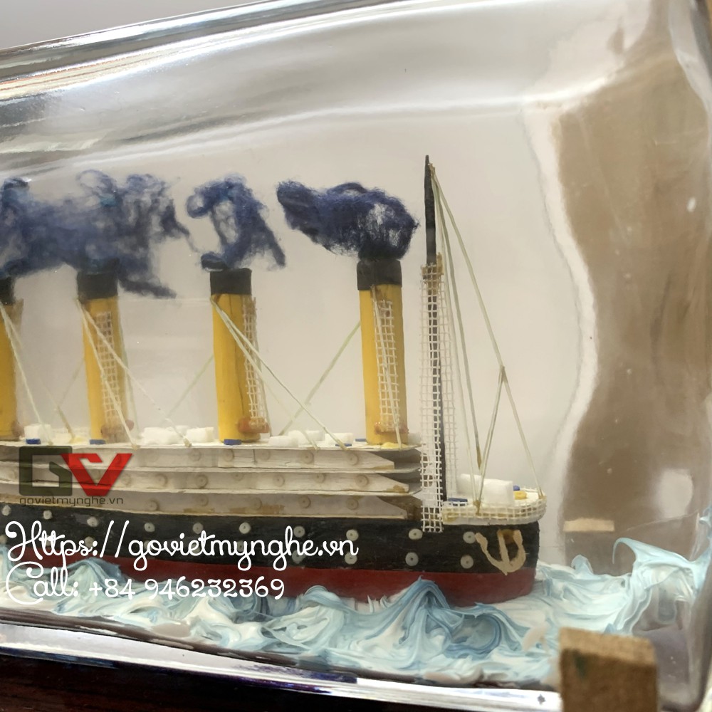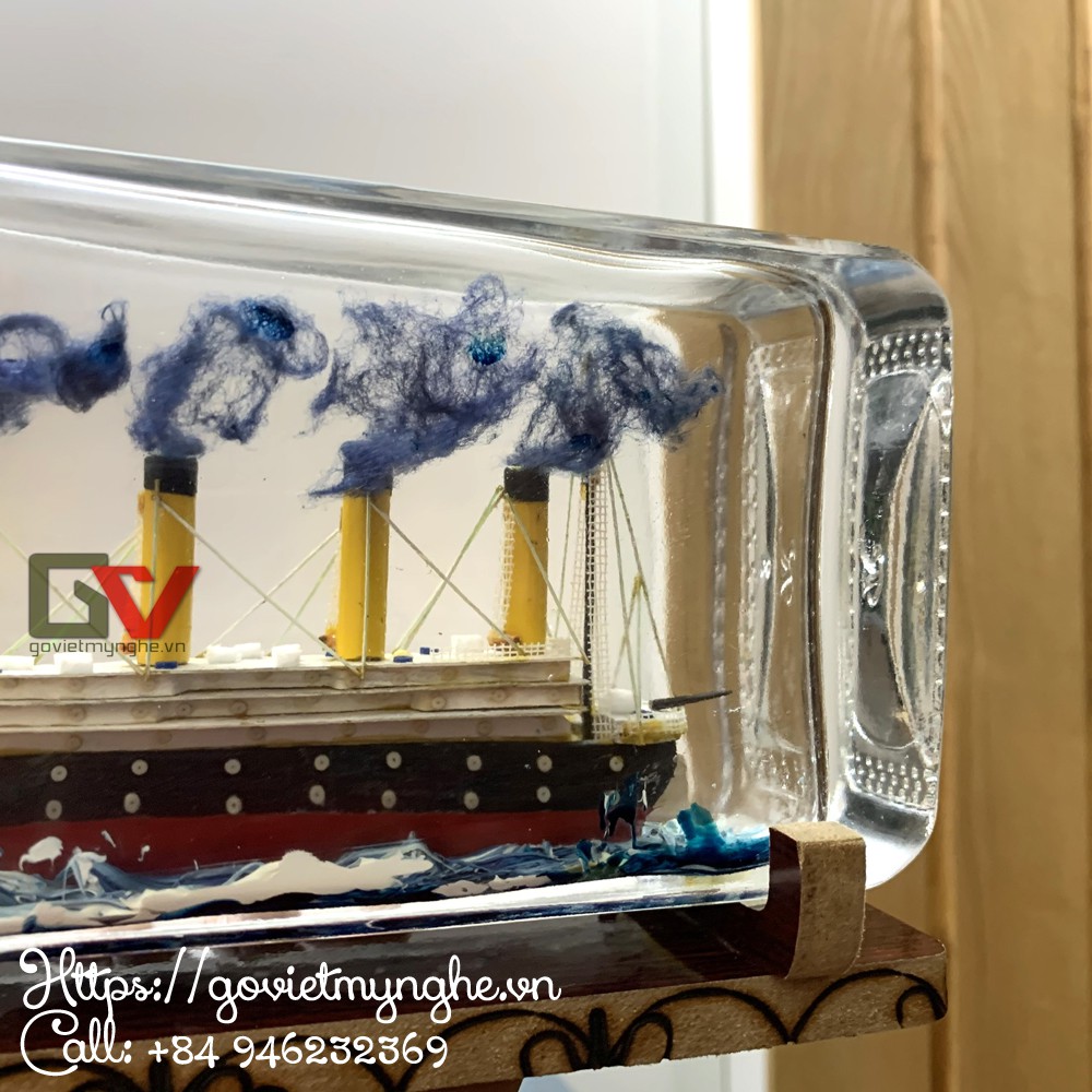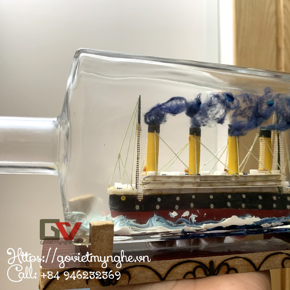 Mô hình tàu gỗ tàu Titanic mô hình trong chai thủy tinh kèm tiểu cảnh sóng biển - thủ công mỹ nghệ làm bằng tay