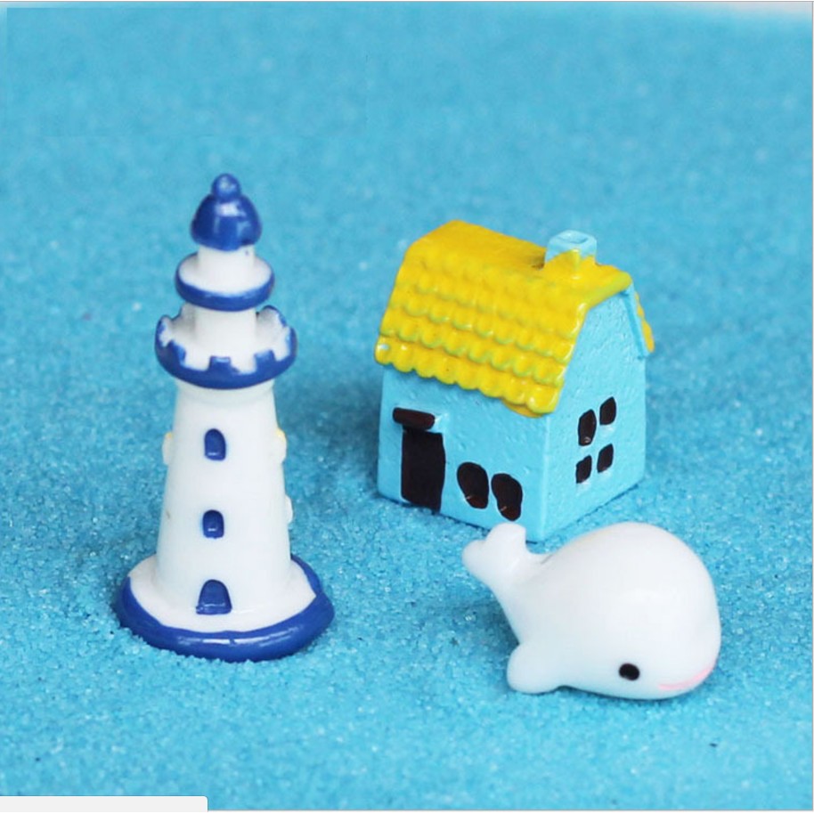 Mô hình tháp hải đăng và cá voi trắng trang trí nhà búp bê, tiểu cảnh, bonsai, miniatures (SMD-16)